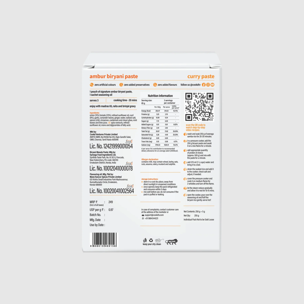 Cookd: Ambur Briyani Paste Without Rice(Preservatives Free) 255g